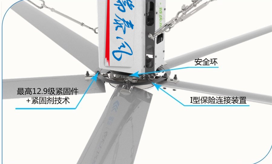 安全的,瑞泰風(fēng)大風(fēng)扇的核心理念,采用10道(安全繩、安全環(huán)、防掉落軸套技術(shù)、I型扇葉鏈接、12.9級緊固件、防松動(dòng)緊固劑、扇葉加強(qiáng)設(shè)計(jì)、加強(qiáng)型插件設(shè)計(jì)、控制系統(tǒng)過載保護(hù)等)以上安全防護(hù)措施,組件全部采用全球頂級知名品牌施耐德、威圖、以及德國動(dòng)力技術(shù),做到絕對的萬無一失。